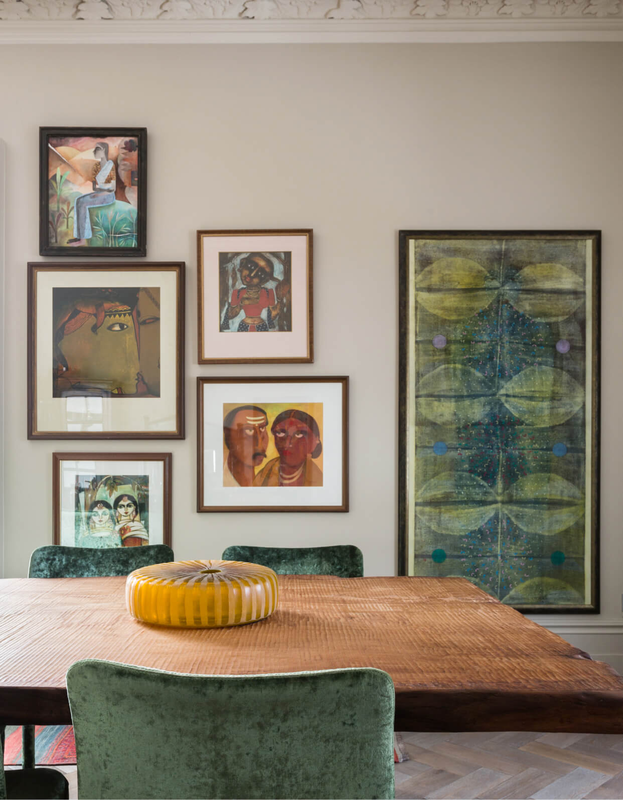 The interiors were curated to showcase the client’s deep appreciation for art. From the salon-style hang of original pieces to the careful interplay of colour and form, every room invites conversation. The design team created a setting where eclectic artwork and rich materials enhance, rather than compete with, the everyday rhythms of life.